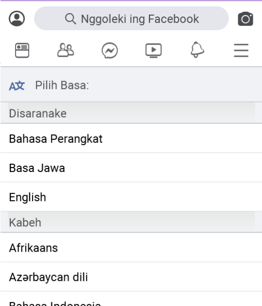 Di Facebook Kita Bisa Mengubah Bahasa. Bahkan Di Facebook Ada Bahasa Jawa.